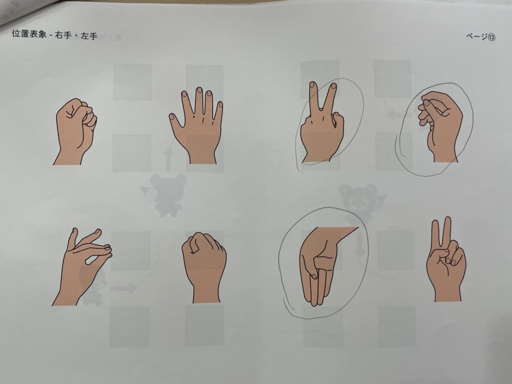 プリントを自分の向きに回そうね、とアドバイスしました。