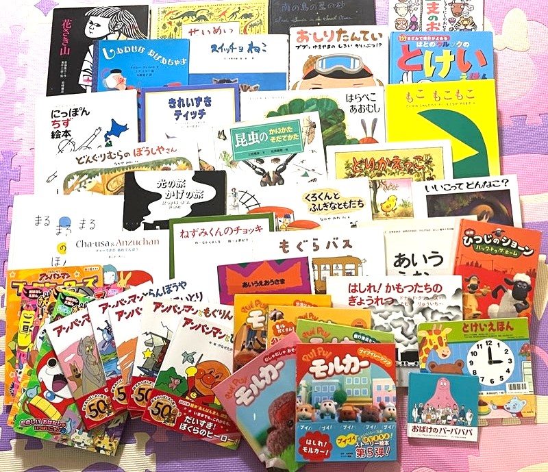 隔週で図書館で借りて毎晩4、5冊は読んでるけど、家の絵本も増やしたいので、中古で42冊購入(3,500円)。