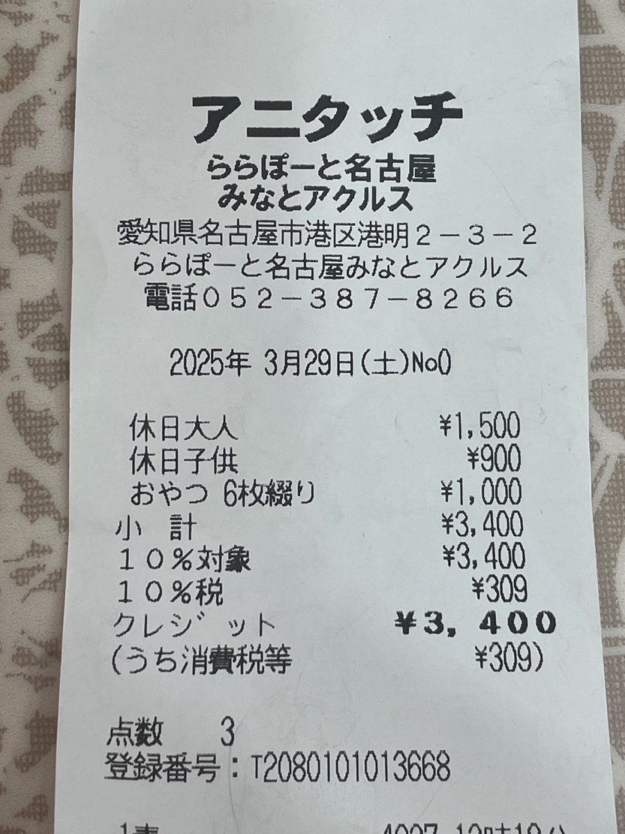 んー。。と考えた結果、近場のららぽーと名古屋のアニタッチに一度行ってみようかと思い立ちました。