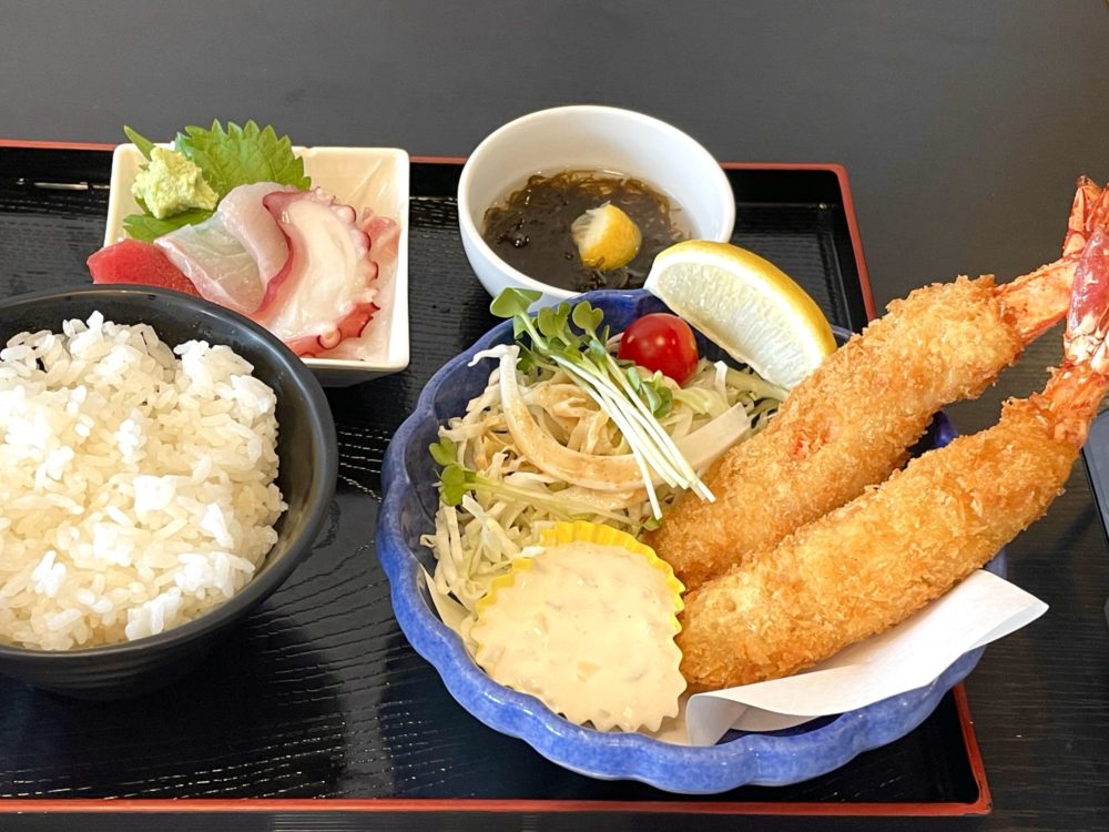 アジ(650円)+調理料(380円)、エビ釣り(450円)、海鮮丼(1,580円)、とろサーモン握り8貫(980円)、エビフライ定食(1,680円)