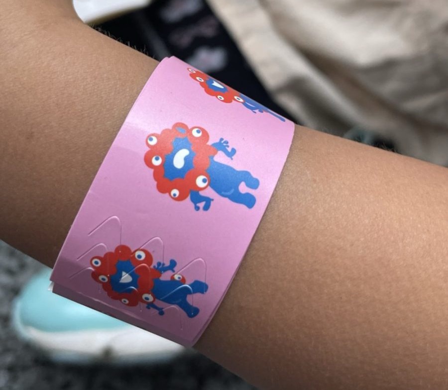 東ゲート近くのベビーカーを借りれる所で、迷子用のリストバンドを貰えます。