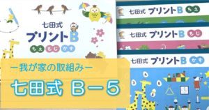 国語(もじ)、算数(かす)、迷路時計など他(ちえ)、を同割合で進めていく七田式プリントに魅力を感じました。